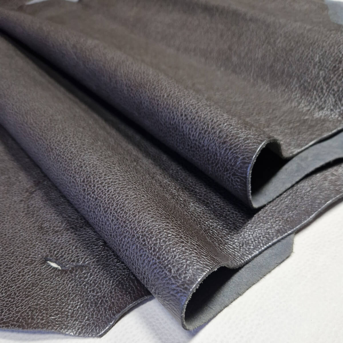 • Galanterinė oda – Tamsiai ruda, su faktūra, minkšta, blizgi, 1,8-2,0mm, 175dm2