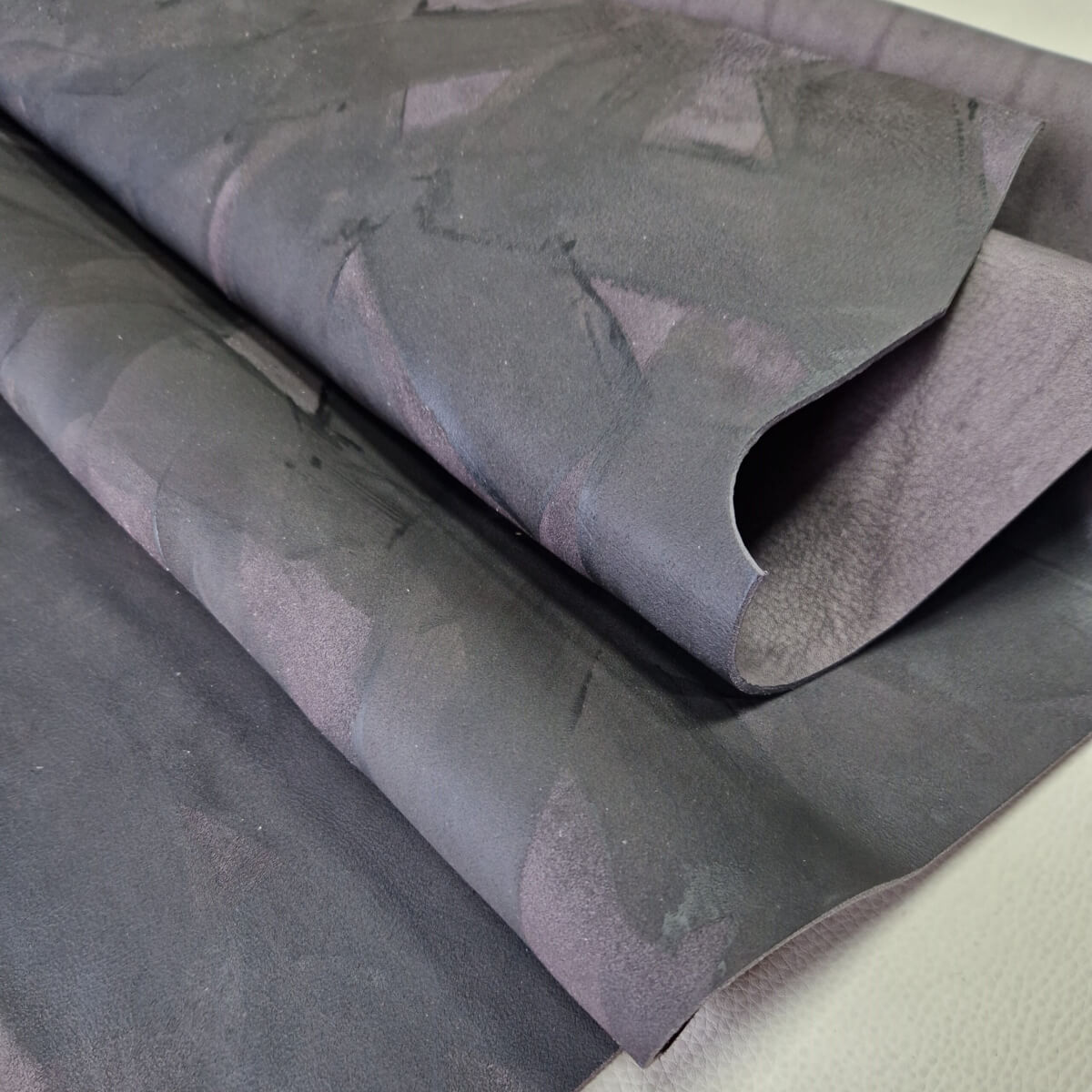 • Galanterinė oda – Augalinio rauginimo, juoda/pilka, dekoruota, minkšta, 2,5mm, 150x95cm