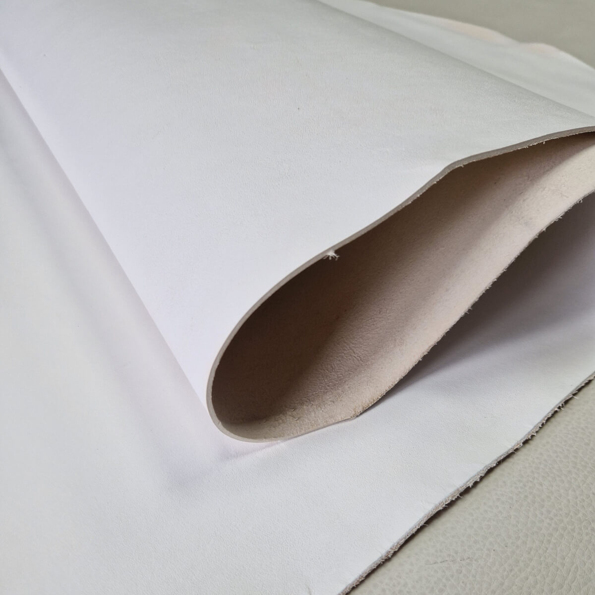 • Galanterinė oda – Augalinio rauginimo, balta, minkšta, su faktūra, 1,8mm, 102x65cm