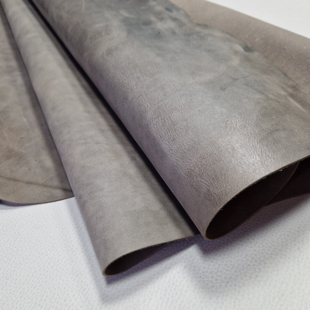 • Galanterinė oda – Augalinio rauginimo, pilka, vidut. kietumo, „sendinta”, 1,5mm, 140x100cm