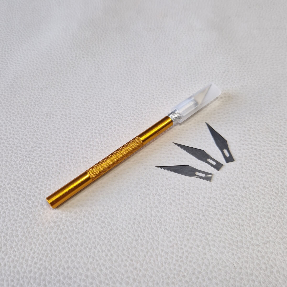 • Peilis – skalpelis, bronzinės spalvos, aštrus, 3vnt papildomų peiliukų