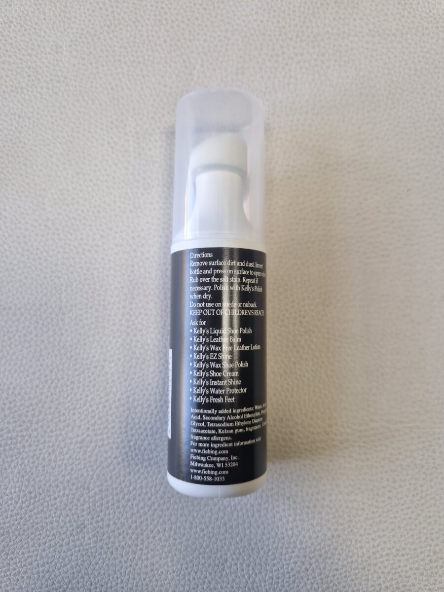 Kelly’s De-Salter can be used on leather and canvas shoes.