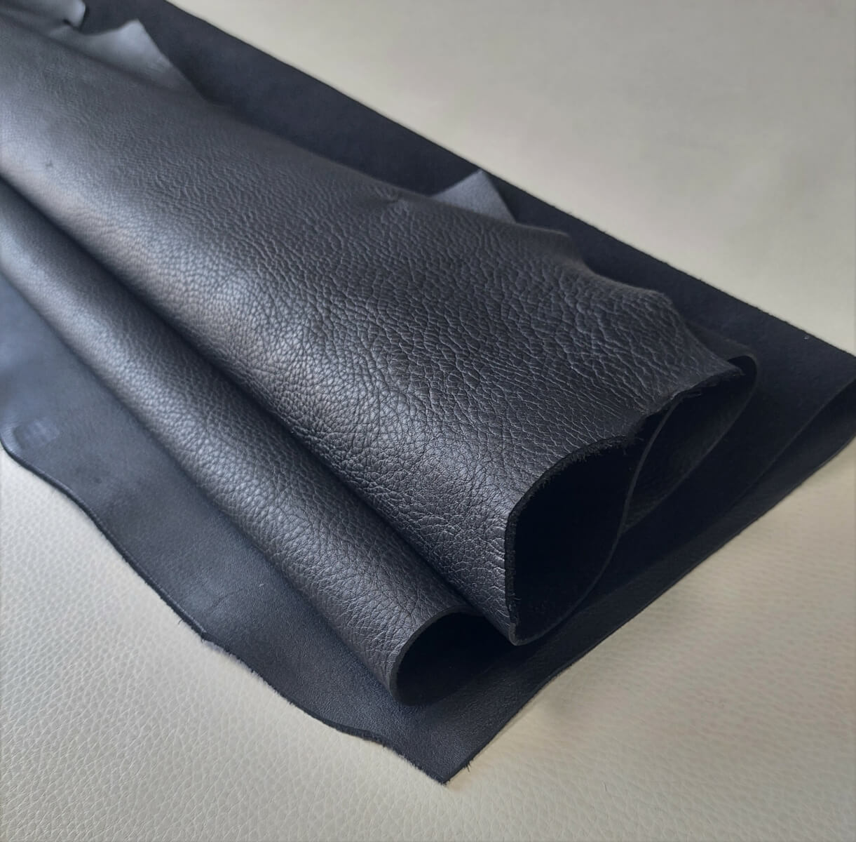 Haberdashery leather – Black, soft , “Saffiano” natural face, 1,8-2,0mm, 91×90