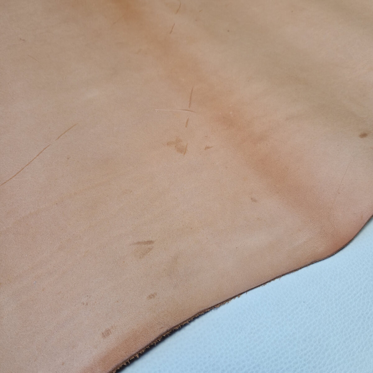 Vegetable tanned leather – not colored, medium rigid, smooth, 2,0-2,2mm, 120x110cm, small defects!