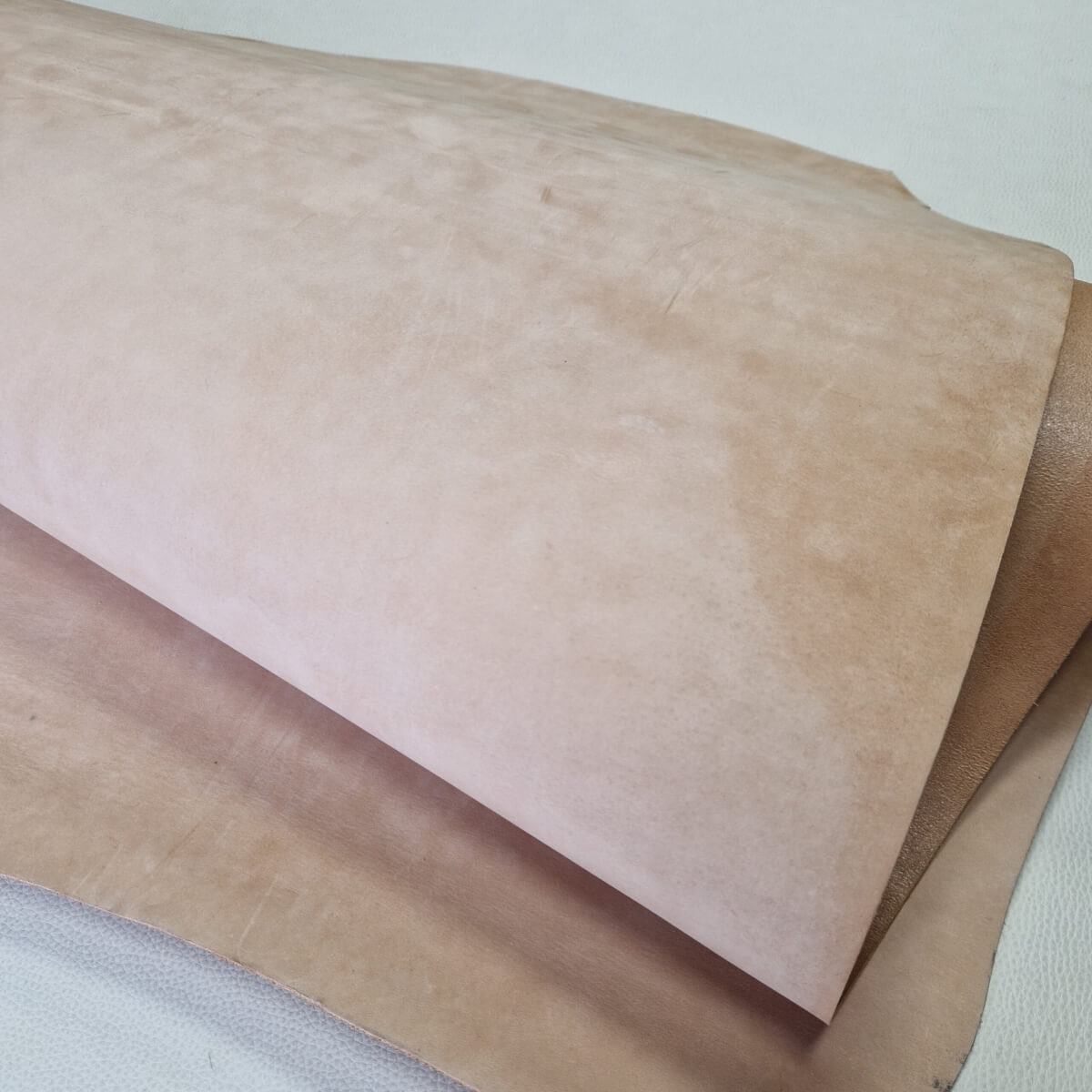 Diržinė augalinio rauginimo oda – Kreminė, „Nubukas”, vidut.kietumo, 3,5-4,0mm