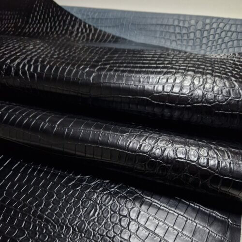 Galanterinė oda – Juoda, krokodilo raštas, vidut. kietumo, 1,1-1,3mm, 180x75cm