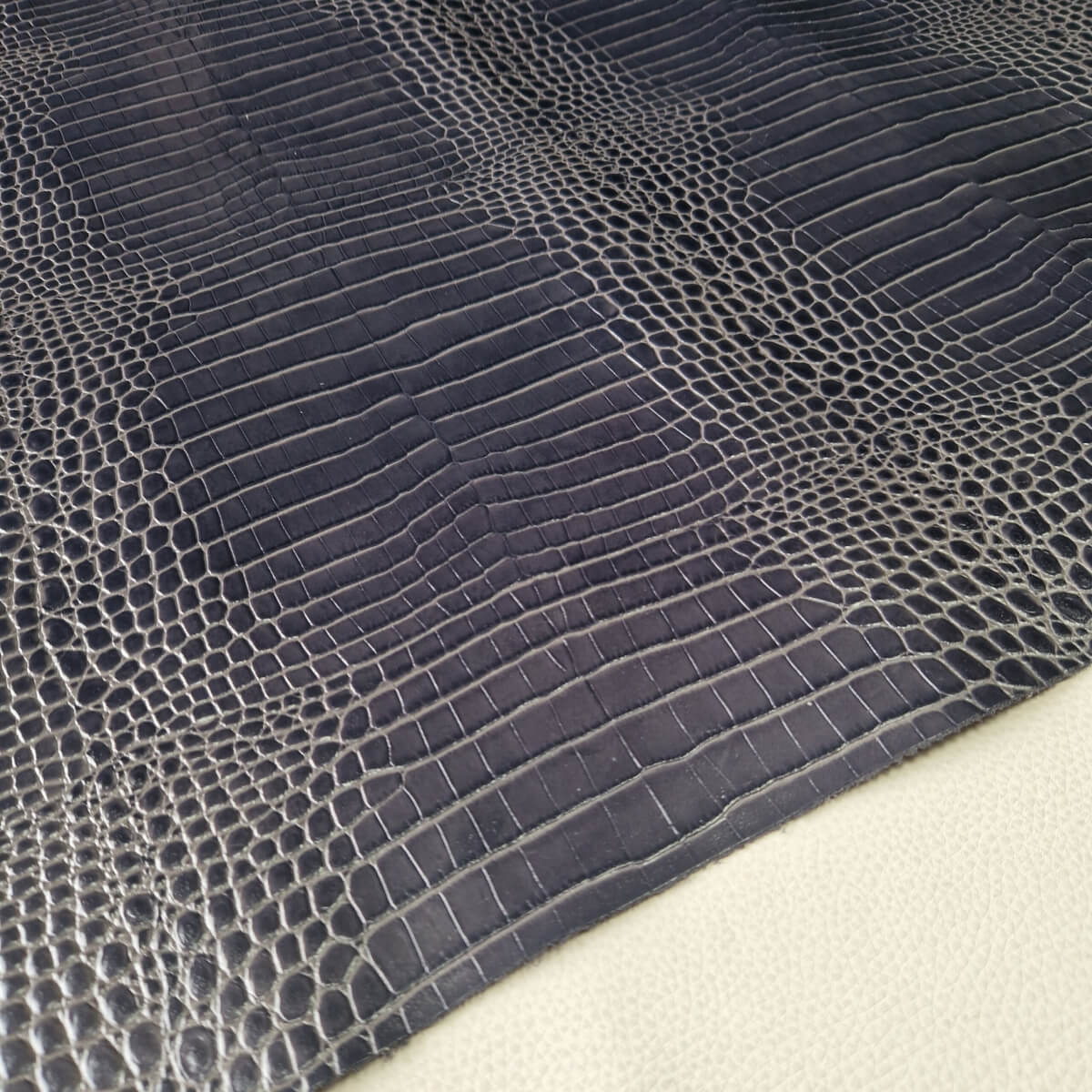 Galanterinė oda – Mėlyna, krokodilo raštas, vidut. kietumo, 1,1-1,3mm