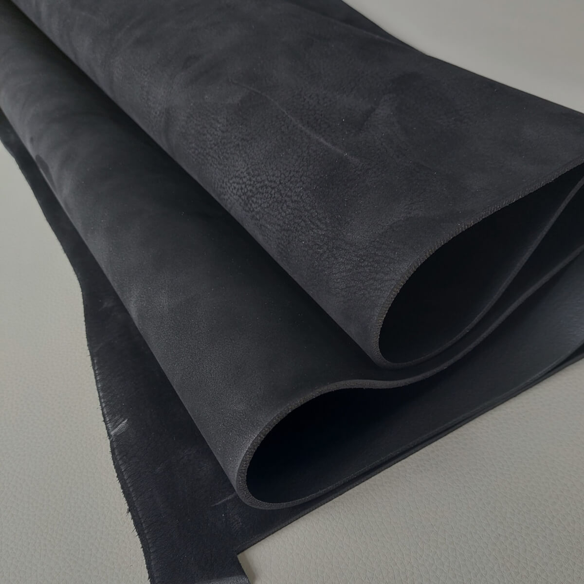 Diržinė augalinio rauginimo oda – Juoda, „Nubukas”, minkšta, 4,2-4,4mm, 120dm2