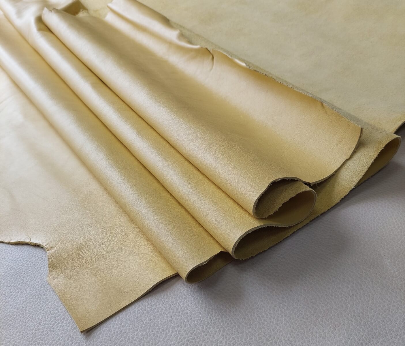 Galanterinė/Avalyninė oda – Geltona, minkšta, 1,2mm, 180x80cm