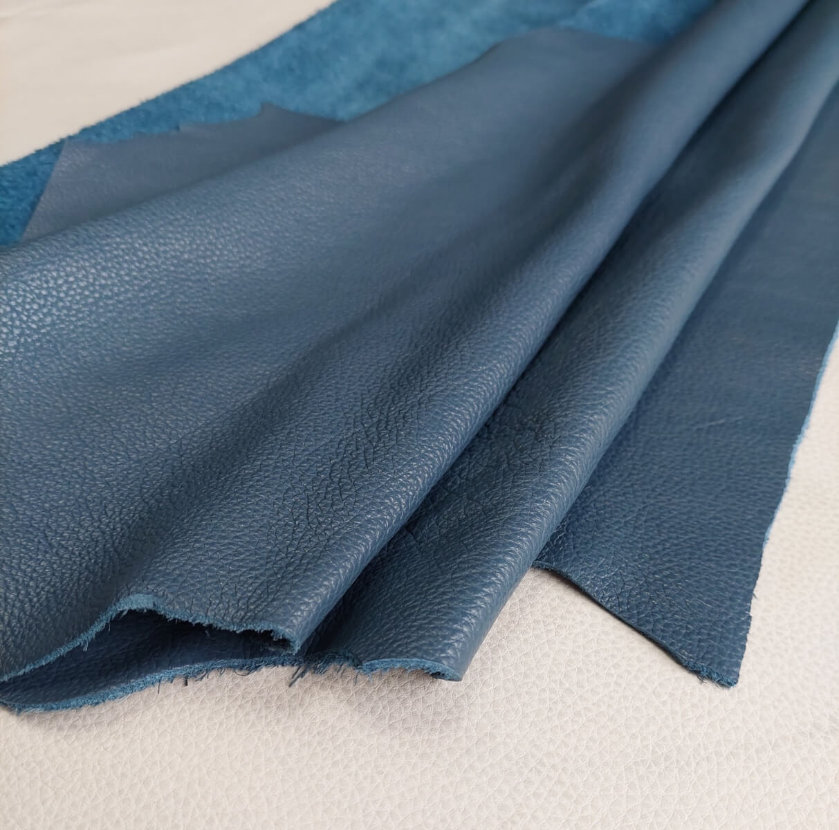 Galanterinė/Avalyninė oda – Mėlyna, faktūrinė, minkšta 1,6mm, 105x103cm