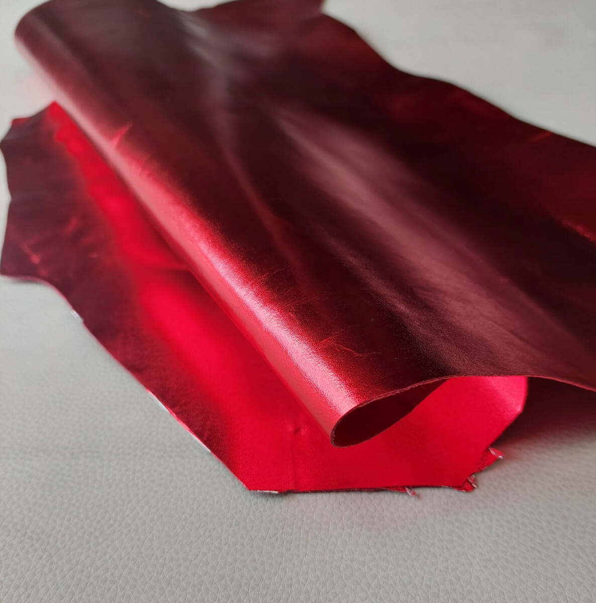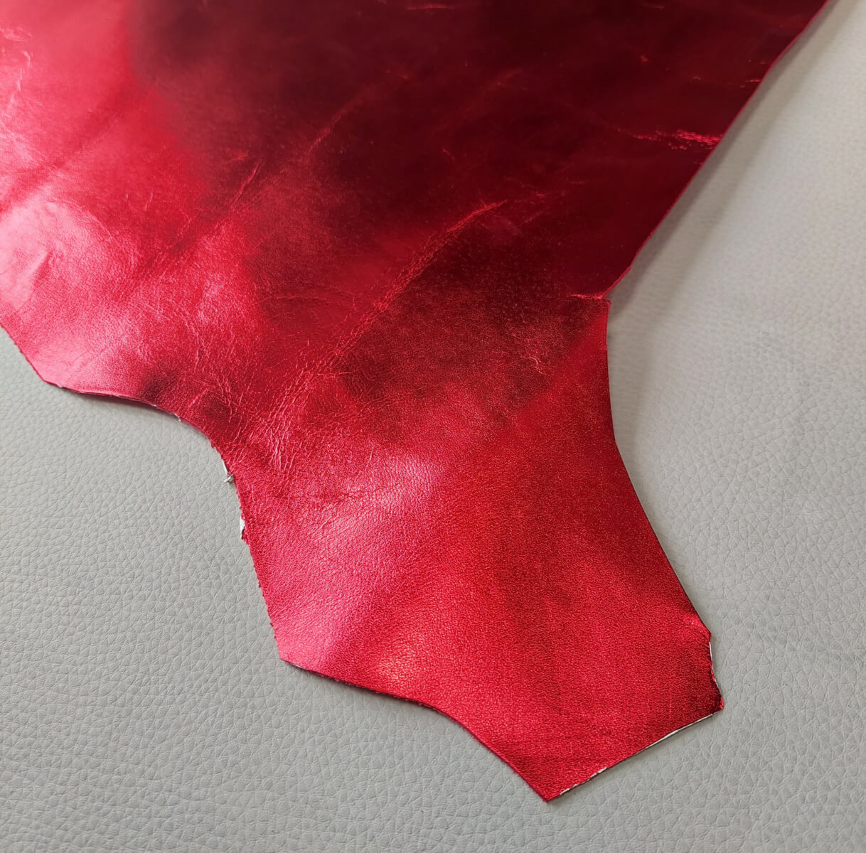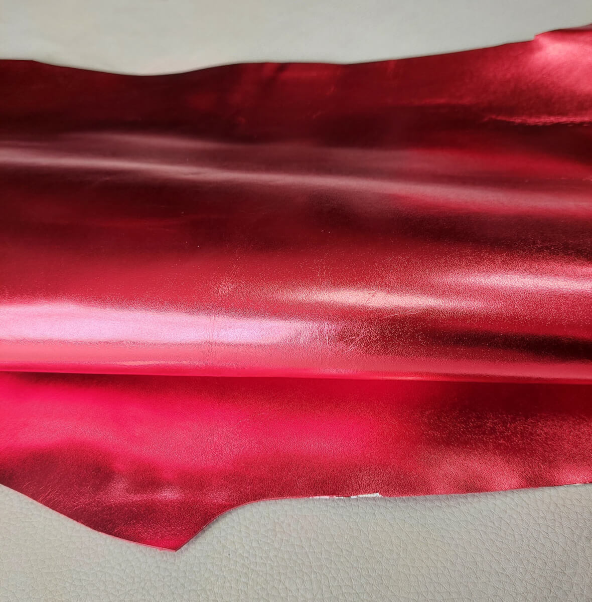 Galanterinė/avalyninė oda – raudona, vidutinio minkštumo, lygi, blizgi, 1,4-1,6mm