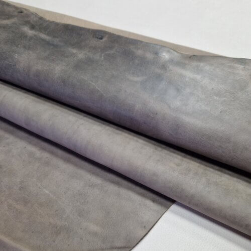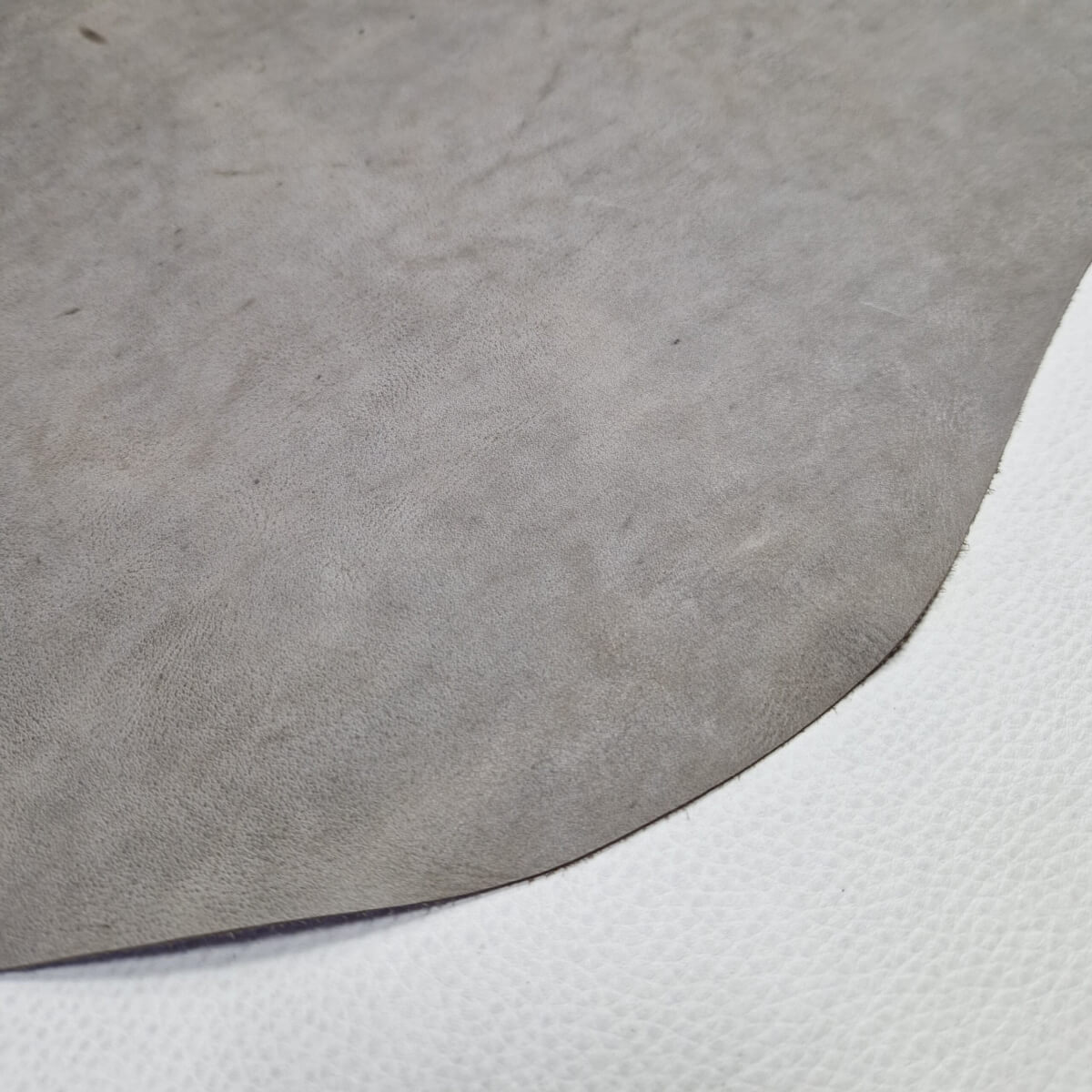 Galanterinė oda – Augalinio rauginimo, pilka, vidut. kietumo, „sendinta”, 1,5mm, 140x100cm