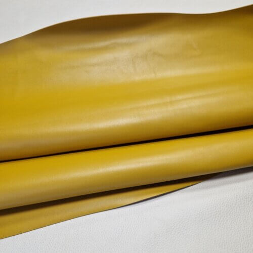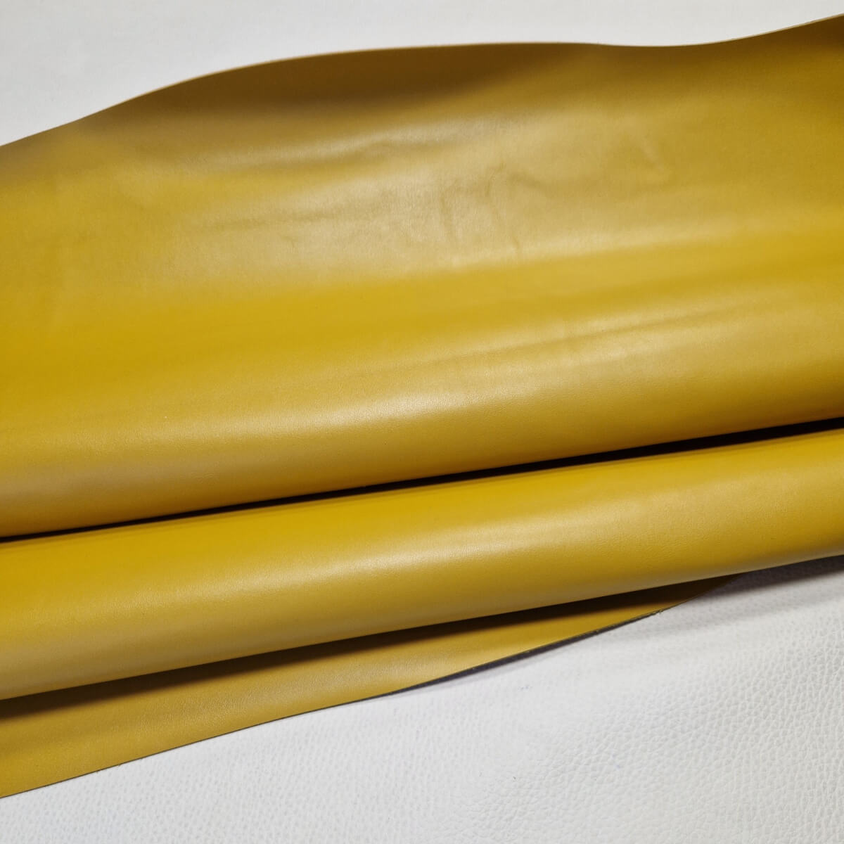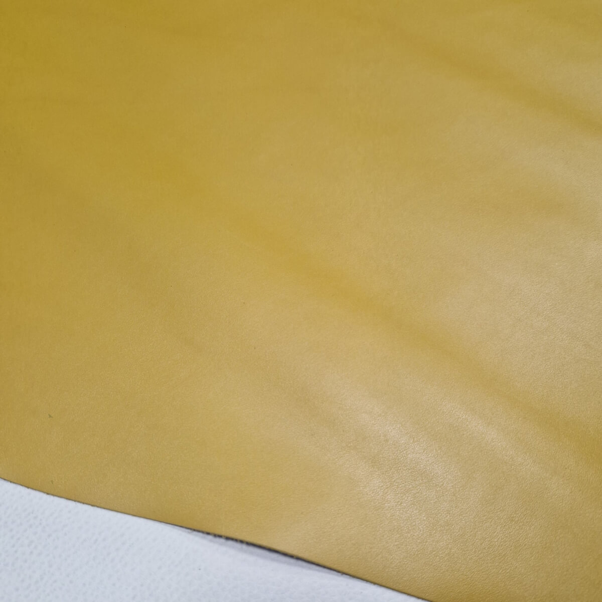 Galanterinė oda – Garstyčių spalva, lygi, vidut. kietumo, 1,2-1,4mm, 155x65cm