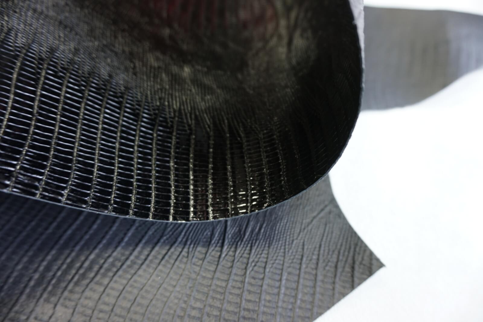 Galanterinė oda – gyvatės rašto, juoda, kieta, 0,9-1,0mm, 62×56