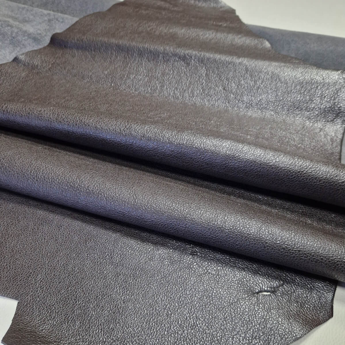 Galanterinė oda – Tamsiai ruda, su faktūra, minkšta, blizgi, 1,8-2,0mm, 175dm2