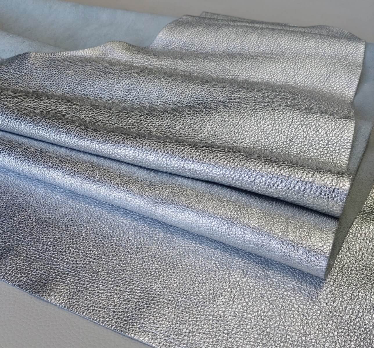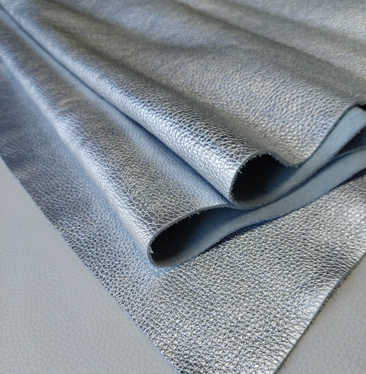 Galanterinė oda – Sidabrinė, minkšta, su faktūra, 1,5mm, 126x90cm