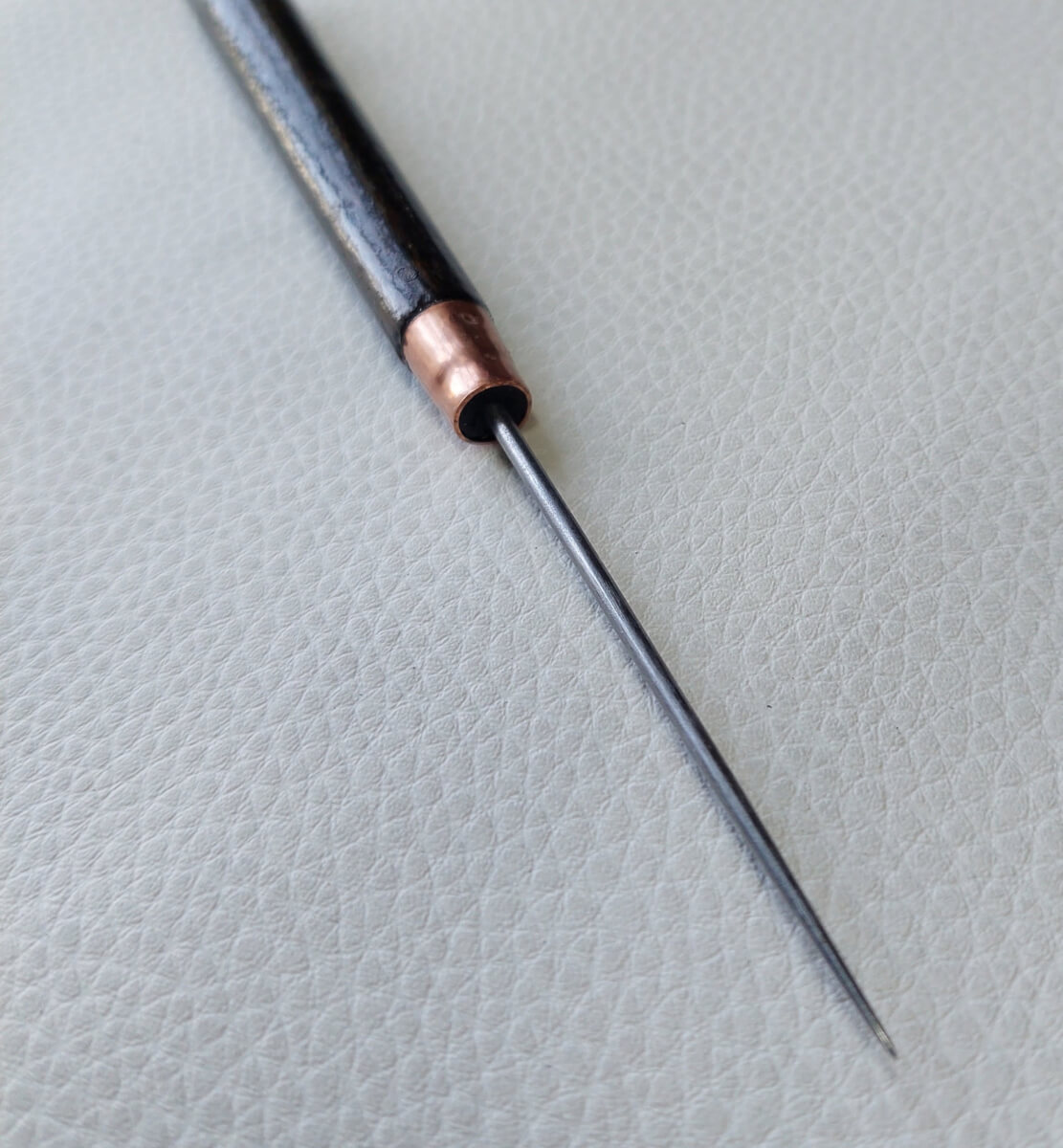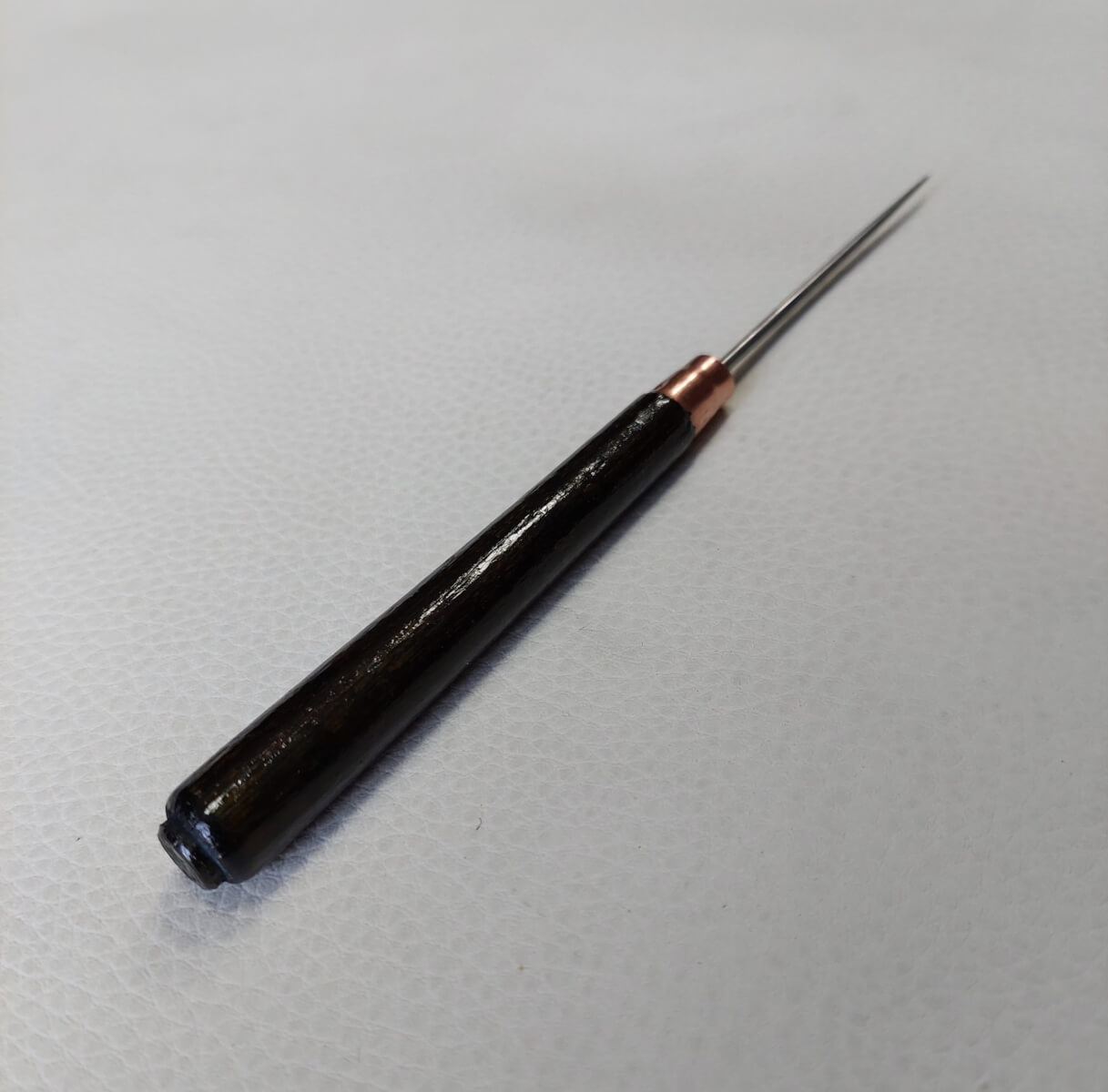 Ergonomiška medinė rankena patogiai guli rankoje, užtikrina gerą kontrolę ir komfortą net ilgesnio darbo metu. Puikiai tinka tiek pradedantiesiems, tiek patyrusiems odos meistrams.